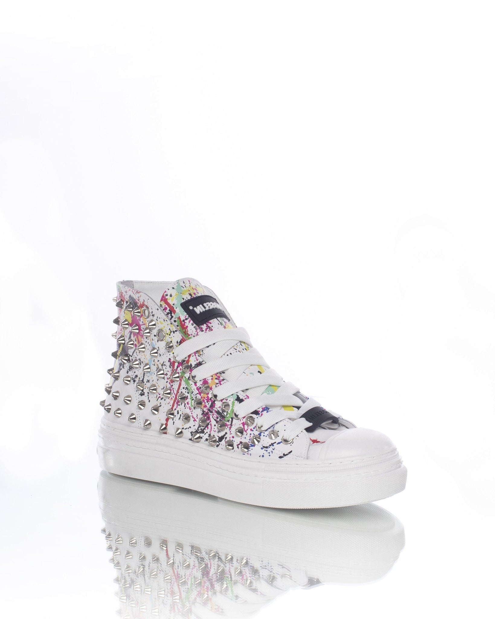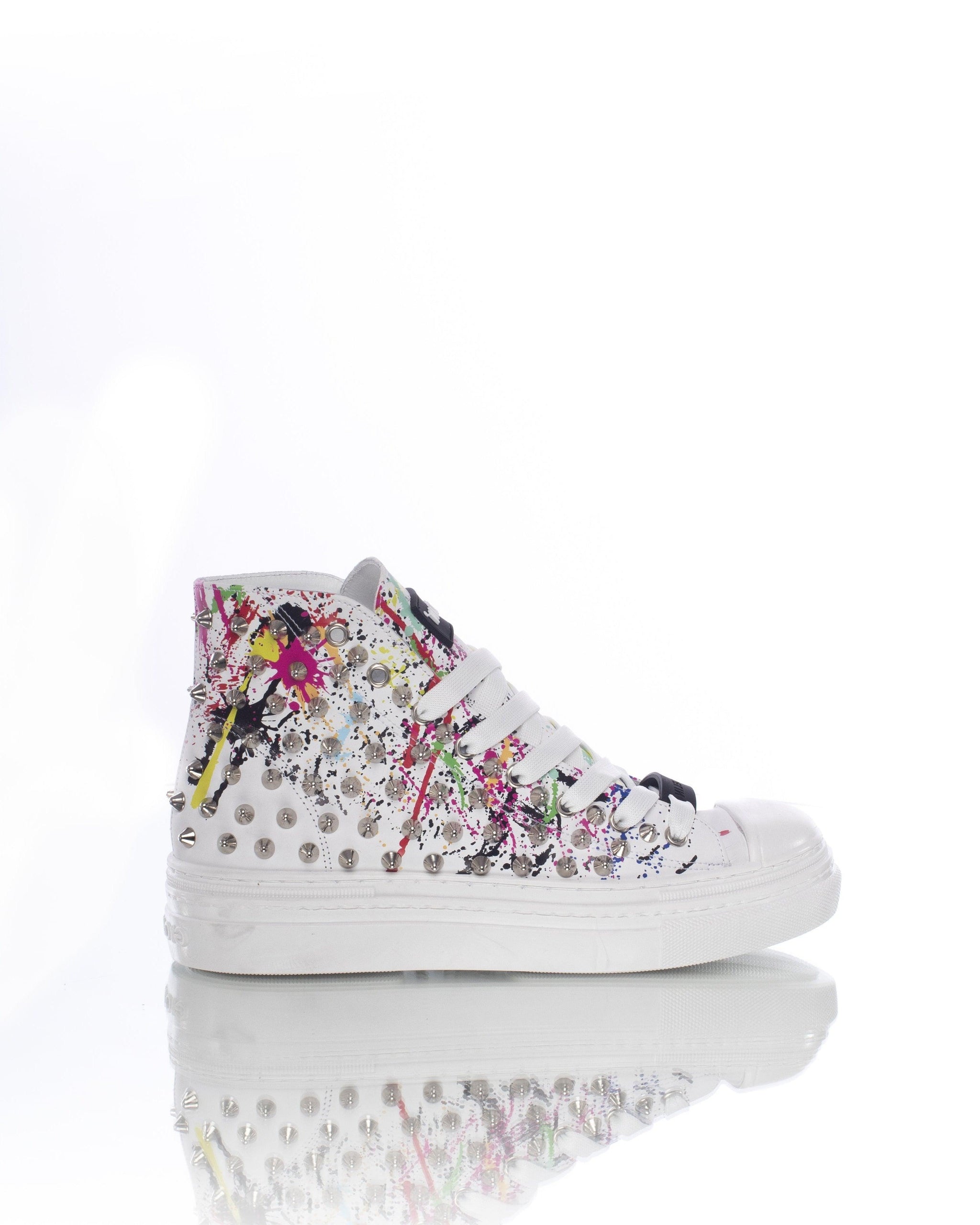Bei diesen Sneakern handelt es sich nicht nur um ein einfaches Paar Schuhe; sie sind ein Kunstwerk. Mit ihren auffälligen und silberfarbenen Nickelnieten werden Sie bei jedem Schritt die Aufmerksamkeit aller auf sich ziehen. Die Zunge ermöglicht ein einfaches Anziehen, während das Schnürmodell für einen sicheren Sitz sorgt. Die dicke, konturierte Sohle bietet außergewöhnlichen Komfort und verleiht Ihrer Körpergröße dank ihrer Höhe von 5 cm eine zusätzliche Note.