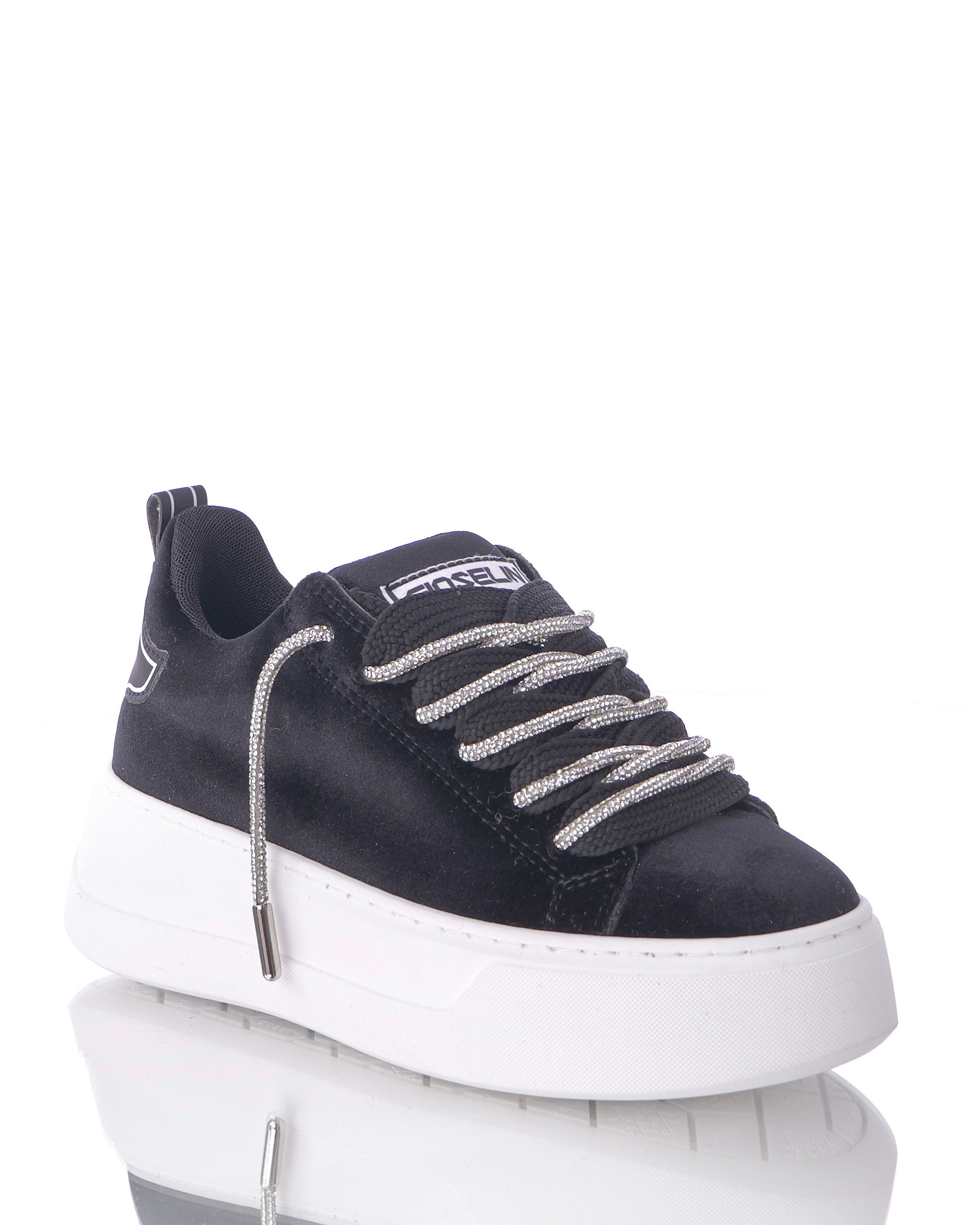 Die Strass-Schnürsenkel sind das wahre Schmuckstück dieser Kollektion und sorgen für einen Hauch von Glanz, der nicht unbemerkt bleibt. Jeder Strassstein fängt das umgebende Licht ein und erzeugt einen funkelnden Effekt, der sich in leuchtender und raffinierter Eleganz niederschlägt. Sie werden bei jedem Schritt im Mittelpunkt der Aufmerksamkeit stehen, mit Details, die von Klasse und Stil sprechen.