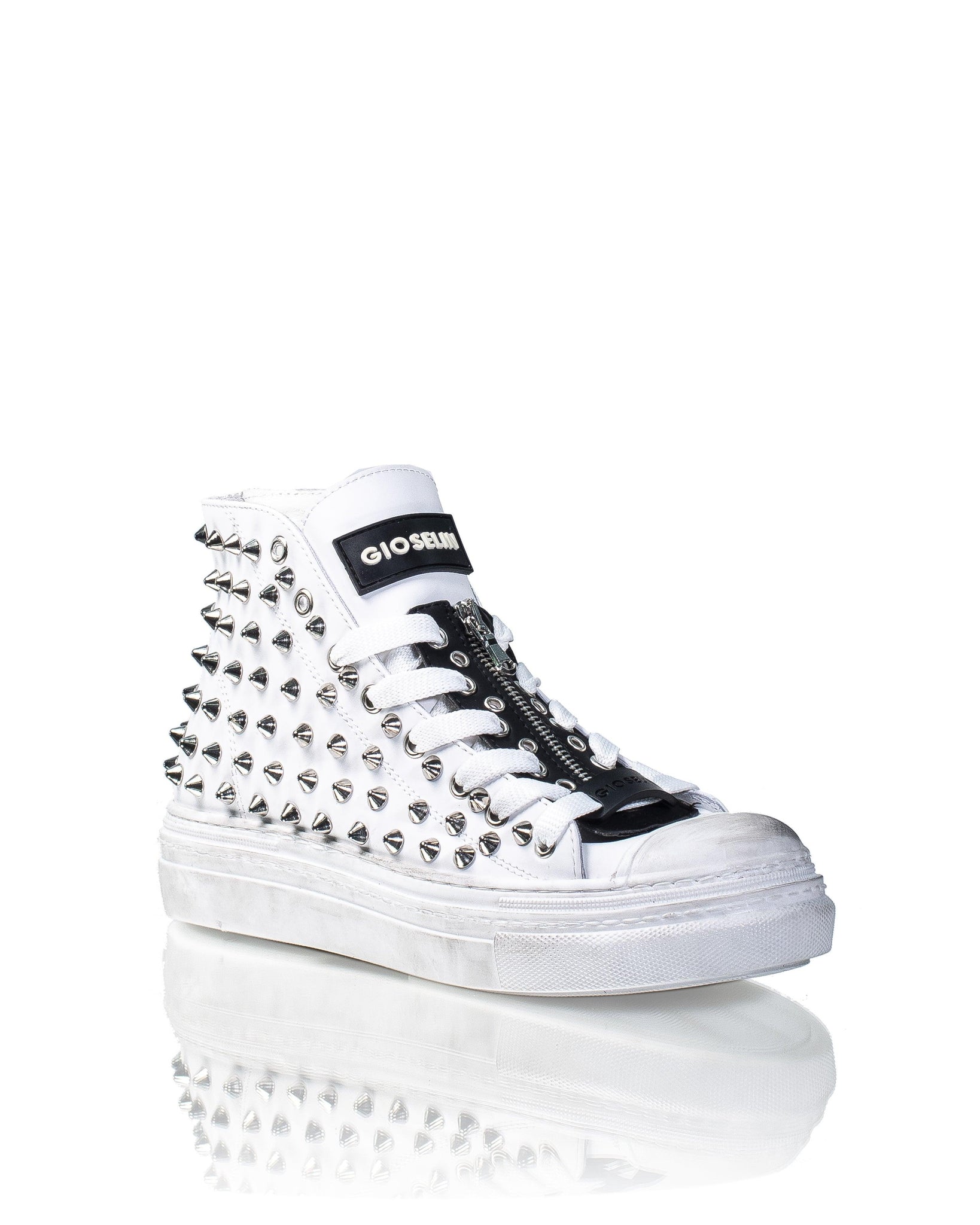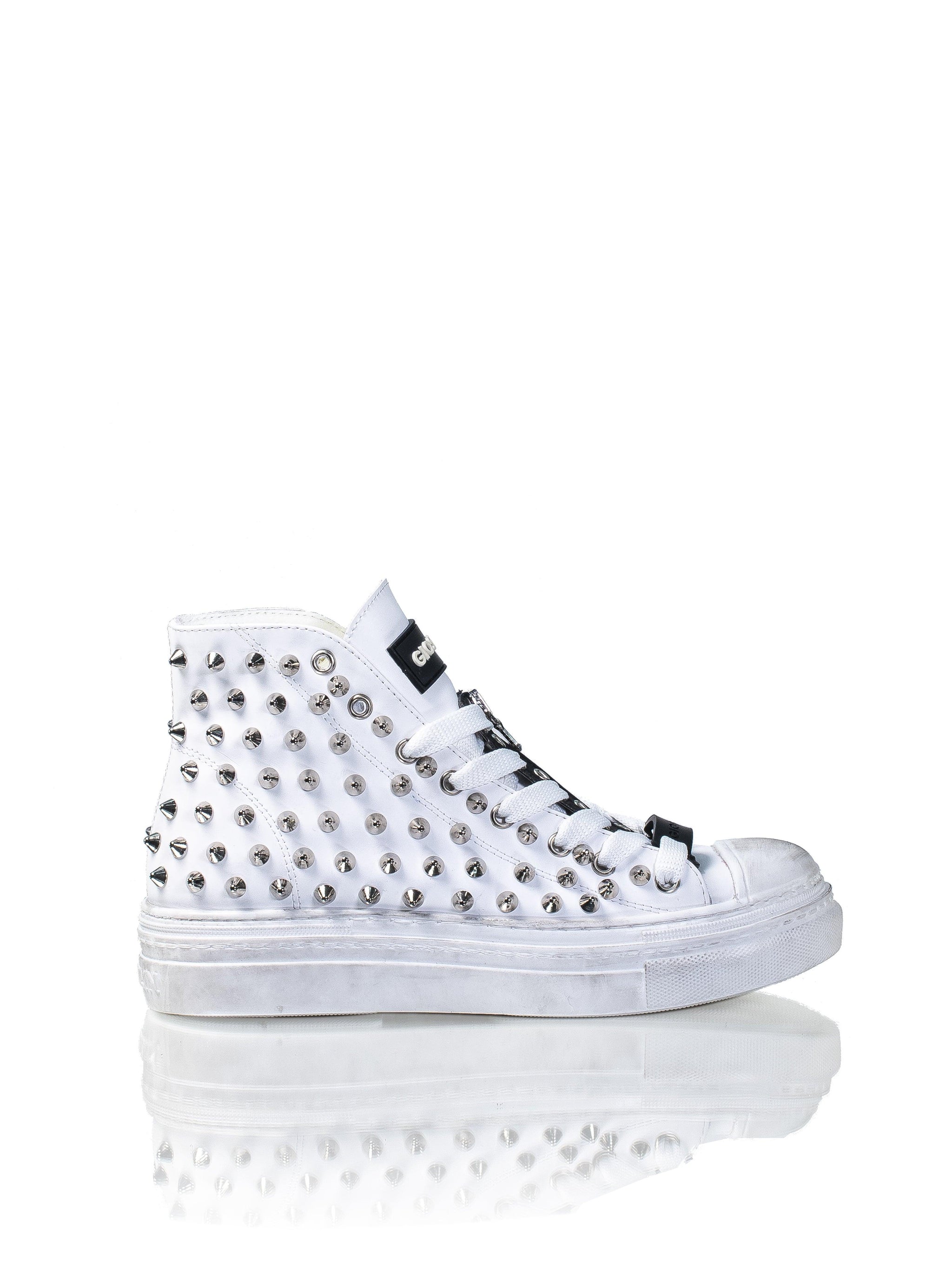 Bei diesen Sneakern handelt es sich nicht nur um ein einfaches Paar Schuhe; sie sind ein Kunstwerk. Mit ihren auffälligen und silberfarbenen Nickelnieten werden Sie bei jedem Schritt die Aufmerksamkeit aller auf sich ziehen. Die Zunge ermöglicht ein einfaches Anziehen, während das Schnürmodell für einen sicheren Sitz sorgt. Die dicke, konturierte Sohle bietet außergewöhnlichen Komfort und verleiht Ihrer Körpergröße dank ihrer Höhe von 5 cm eine zusätzliche Note.