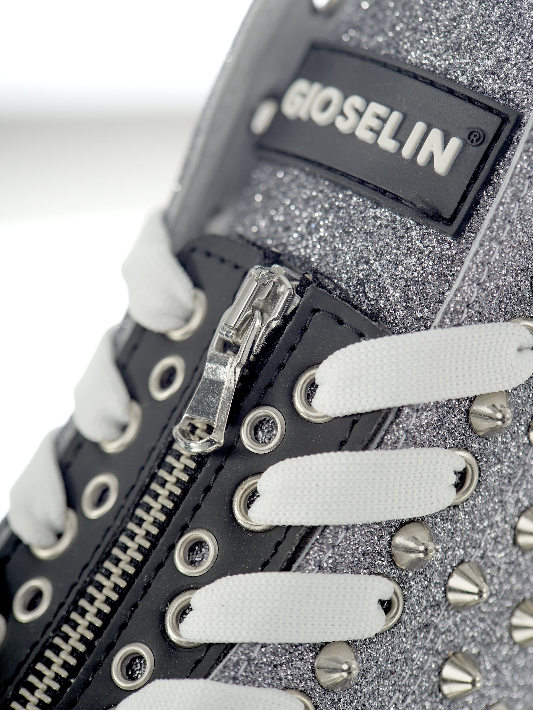 Questo modello è un'autentica dichiarazione di stile, con un profilo alto che ti fa risaltare in mezzo alla folla. Grazie alle pratiche linguette, metterle e toglierle è un gioco da ragazzi, risparmiando tempo prezioso al mattino. Il design stringato permette di regolare la vestibilità in modo ottimale, mentre le borchie in Nikel color argento aggiungono un tocco di grinta e originalità.