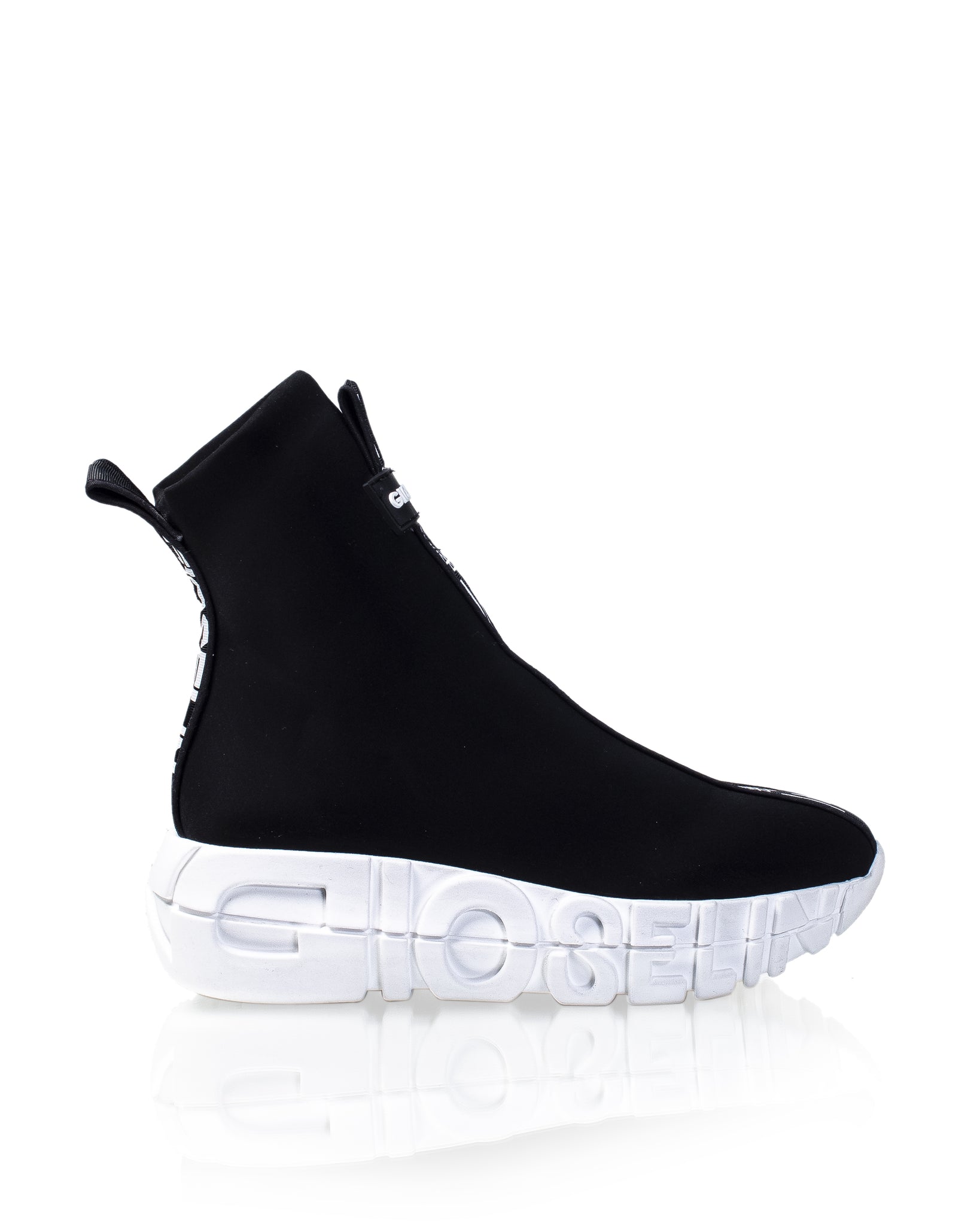 Dieses leichte Modell mit dem Gioselin-Logo auf der Vorderseite ist die ideale Wahl für alle, die eine unvergleichliche Kombination aus Mode und Komfort suchen. Die Schlaufe zum einfachen Anziehen und der Sockeneffekt am Knöchel ermöglichen ein schnelles und einfaches Anziehen. Die konturierte hohe Sohle bietet tadellosen Halt auf jedem Untergrund, sodass Sie Ihren Tag mit Selbstvertrauen und Stil angehen können.