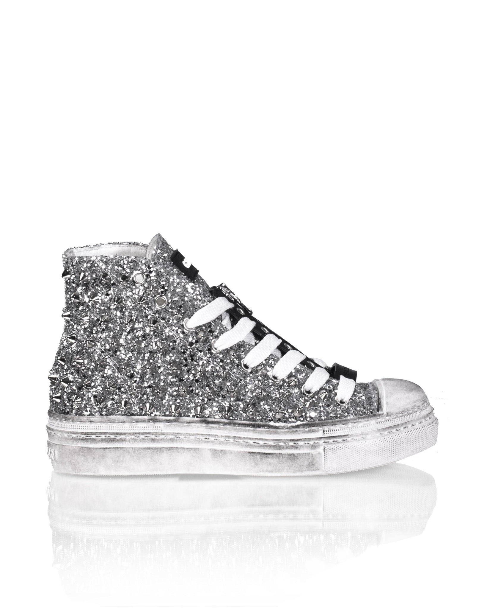 Wenn es eine Sache gibt, die nie aus der Mode kommt, dann ist es die Kraft eines Paares aufmerksamkeitsstarker Sneakers. Und unsere Silver Glitter Sneakers mit Nieten sind Ihre Eintrittskarte in eine Welt voller Mode und Originalität.