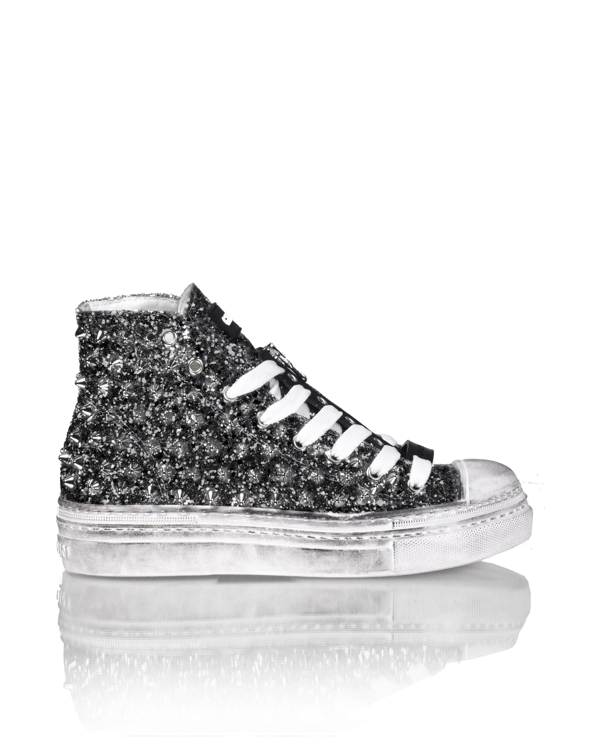 Die Glitter Piombo Sneakers sind die perfekte Wahl für alle, die immer modisch sein wollen. Ihr glitzernder Effekt lässt Sie bei jedem Anlass glänzen und verleiht Ihrem Look einen Hauch von Eleganz und Originalität. Die dicke, konturierte Sohle mit einer Höhe von 5 cm sorgt für Komfort und Stil bei jedem Schritt.