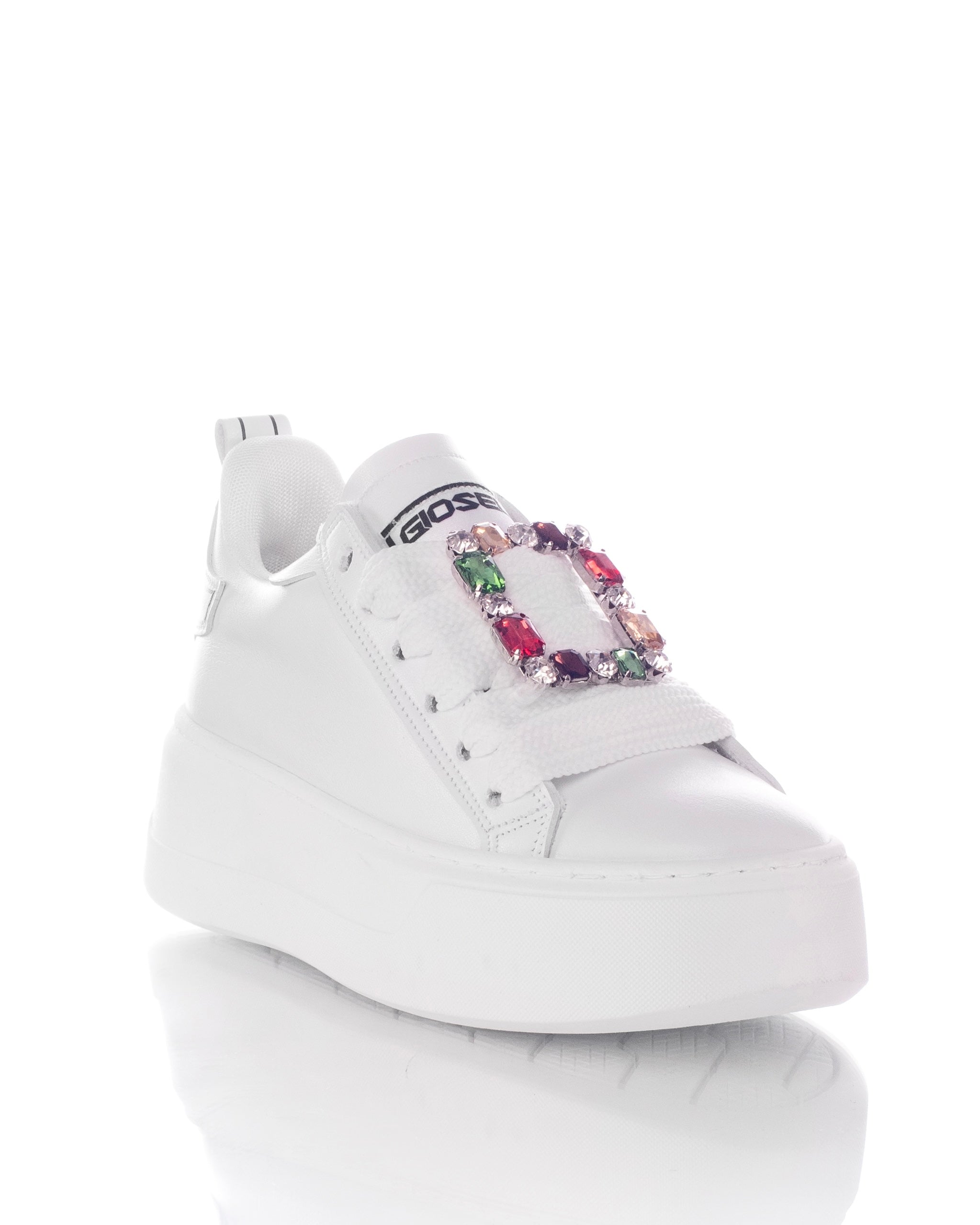 Zu jedem Paar Gioiello-Sneakers gehört ein einzigartiges Schmuckaccessoire, das Ihrem Look einen Hauch von Raffinesse verleiht. Dieses Detail zeichnet diese Sneaker aus und lässt Sie glänzen.