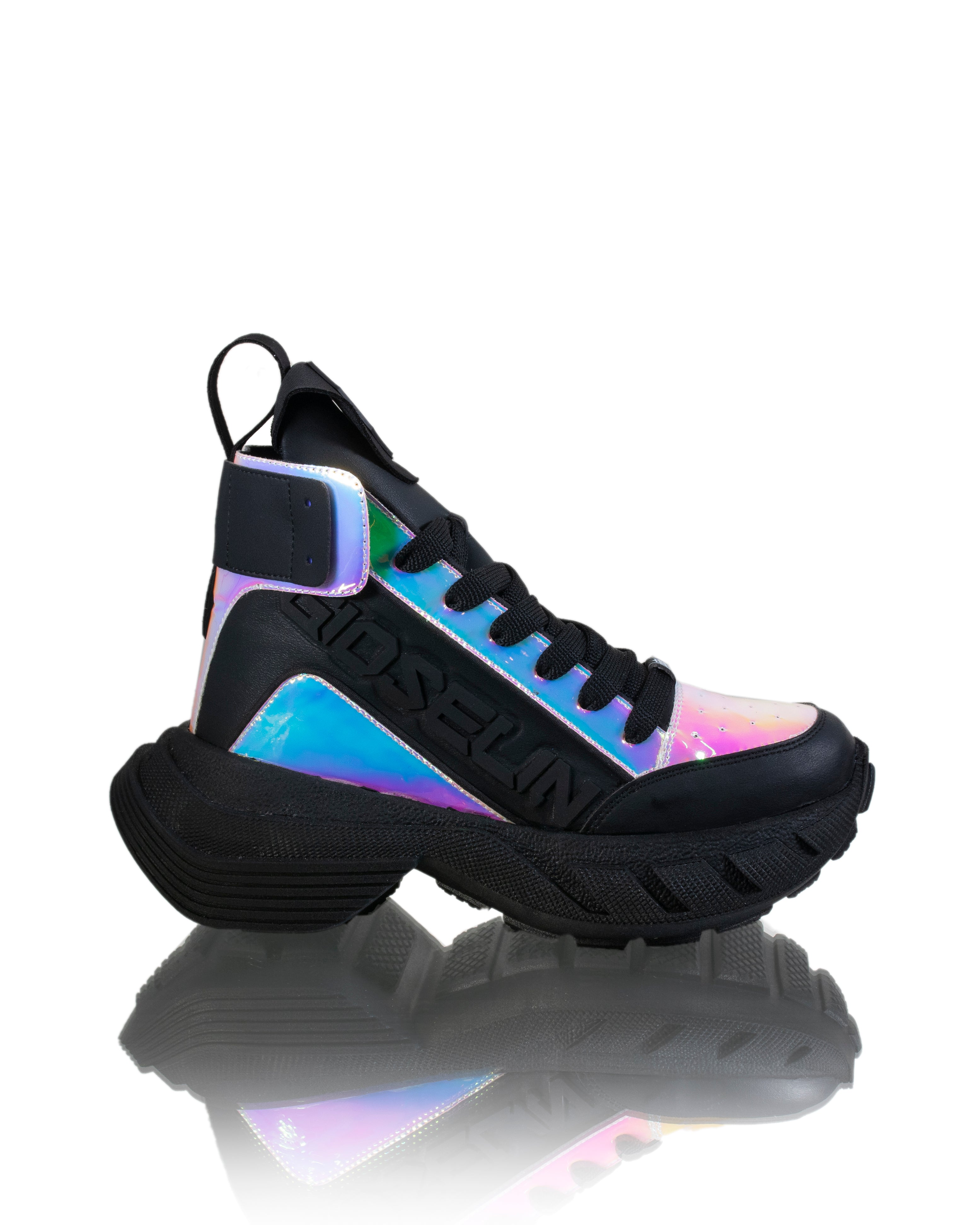 Sneakers mit schillernden Details sind eine raffinierte Wahl für alle, die einen Hauch von Helligkeit in ihrem Stil suchen. Diese Sneaker bieten ein hohes Profil, das Ihrem Look einen Hauch von Eleganz verleiht. Das Modell ist geschnürt und sorgt so den ganzen Tag über für einen sicheren und bequemen Sitz. Die schillernden Kontrastpaneele verleihen dem Design einen Hauch von Originalität und fangen das Licht auf faszinierende Weise ein.