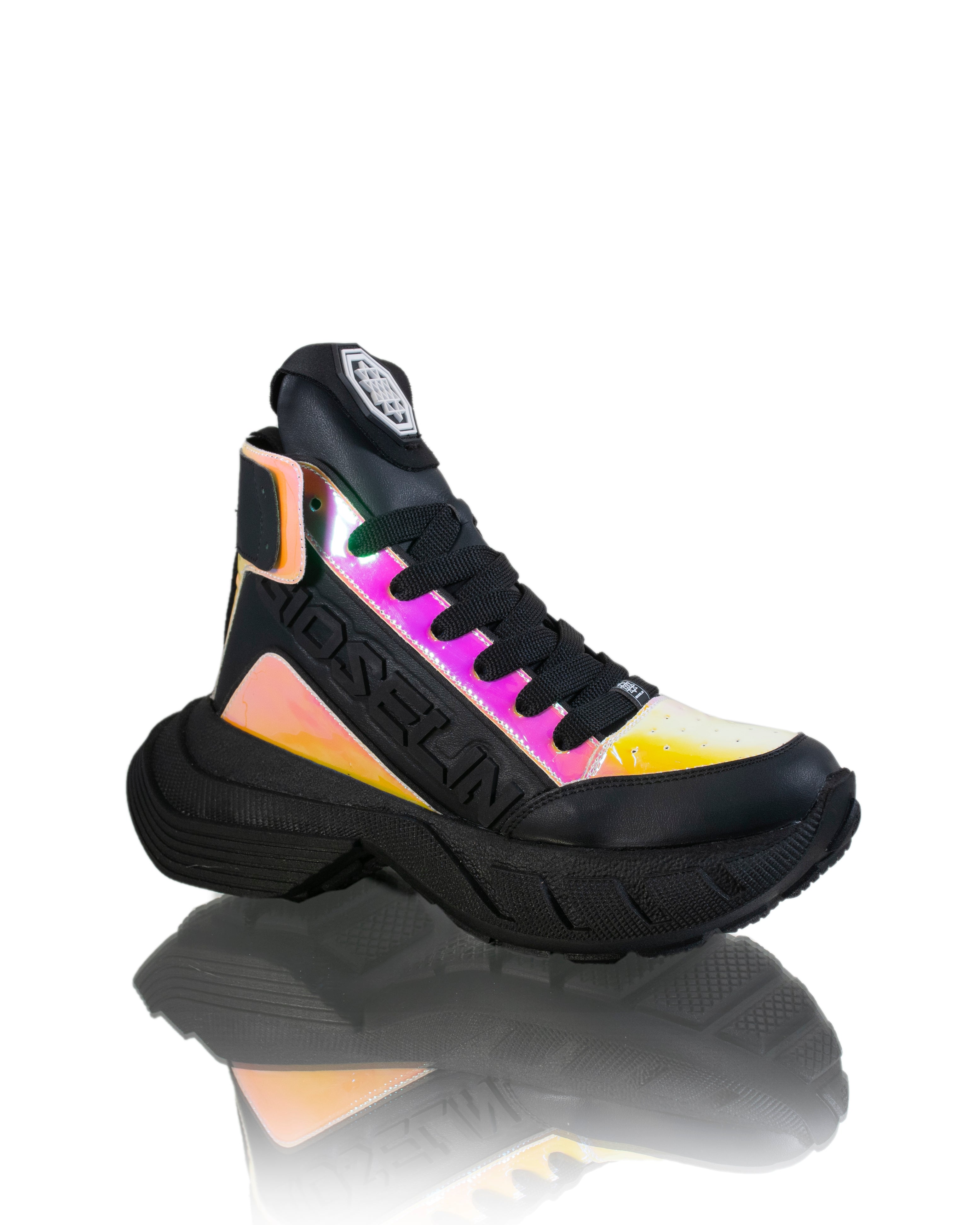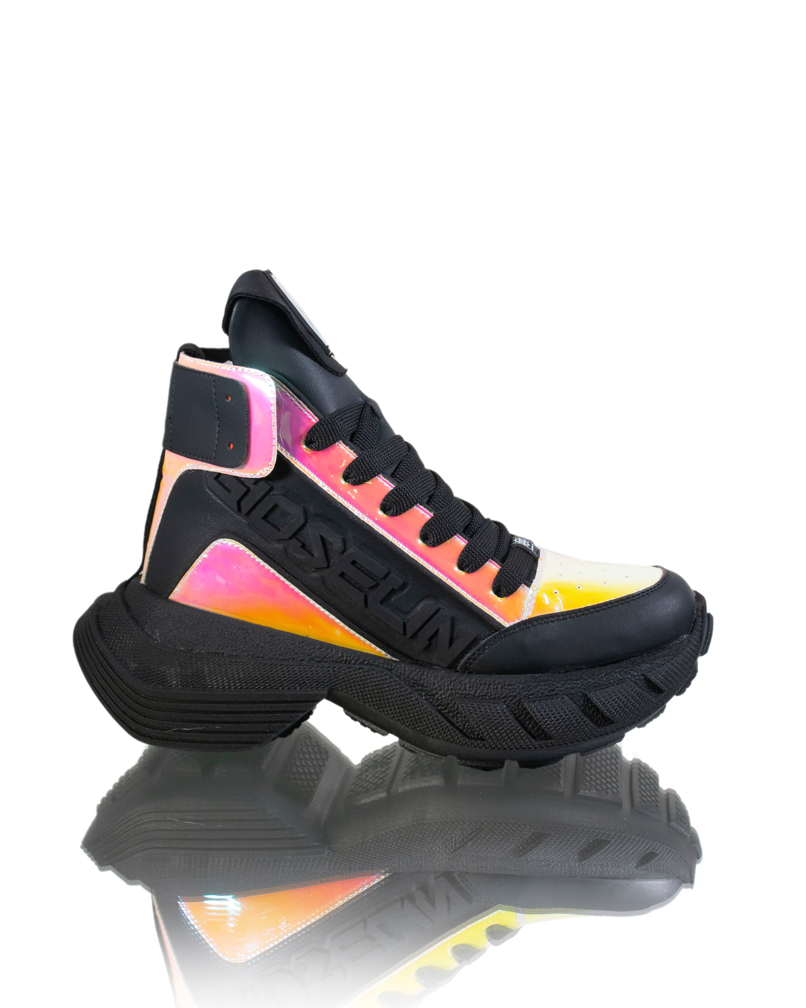 Sneakers mit schillernden Details sind eine raffinierte Wahl für alle, die einen Hauch von Helligkeit in ihrem Stil suchen. Diese Sneaker bieten ein hohes Profil, das Ihrem Look einen Hauch von Eleganz verleiht. Das Modell ist geschnürt und sorgt so den ganzen Tag über für einen sicheren und bequemen Sitz. Die schillernden Kontrastpaneele verleihen dem Design einen Hauch von Originalität und fangen das Licht auf faszinierende Weise ein.