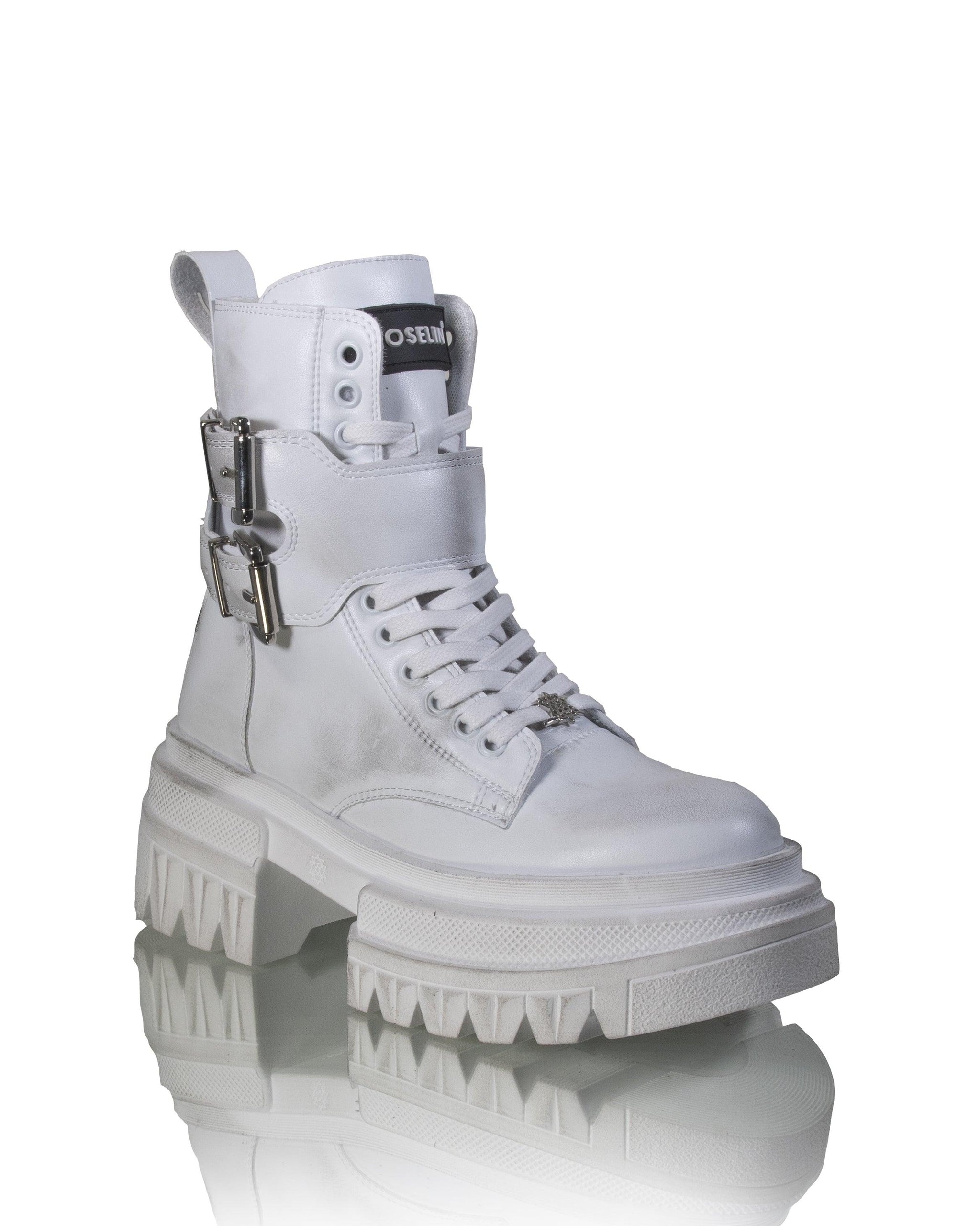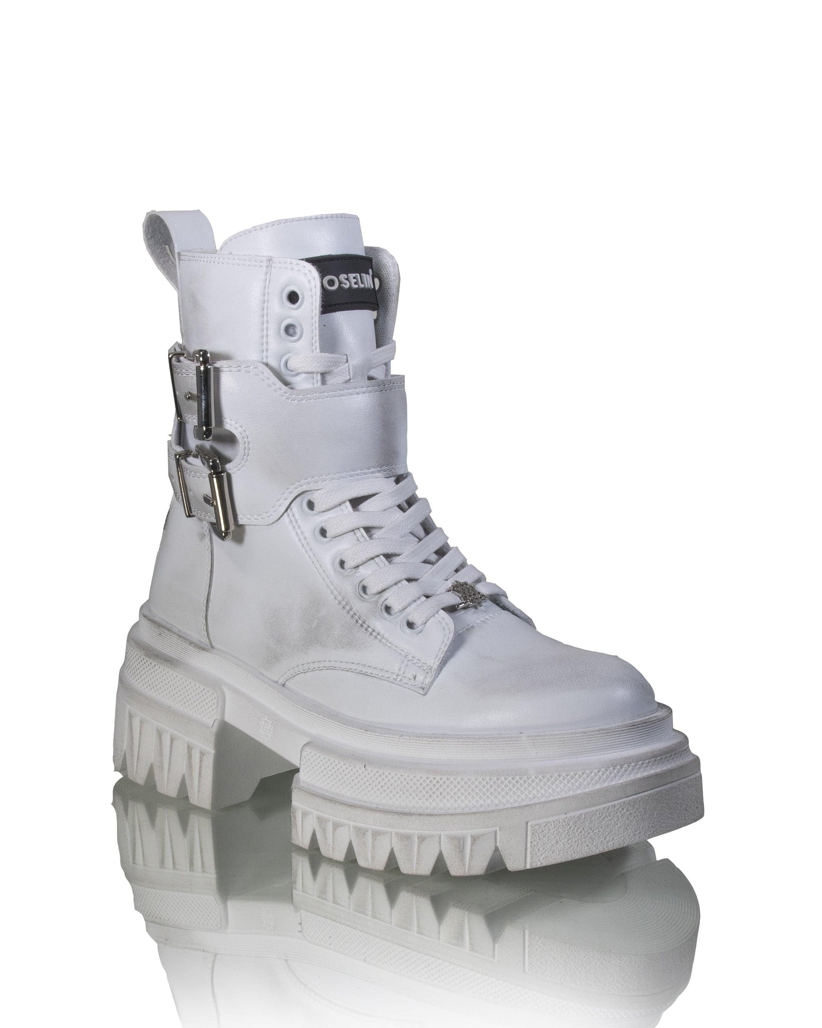 Die weißen Amphibien mit Schnallen sind ideal, um einen mutigen und einzigartigen Look zu vervollständigen. Egal, ob Sie sie für einen besonderen Ausflug tragen oder Ihren persönlichen Stil zum Ausdruck bringen, diese Kampfstiefel sind die ideale Wahl für alle, die einen Hauch von Mut und Rebellion in der Mode suchen.