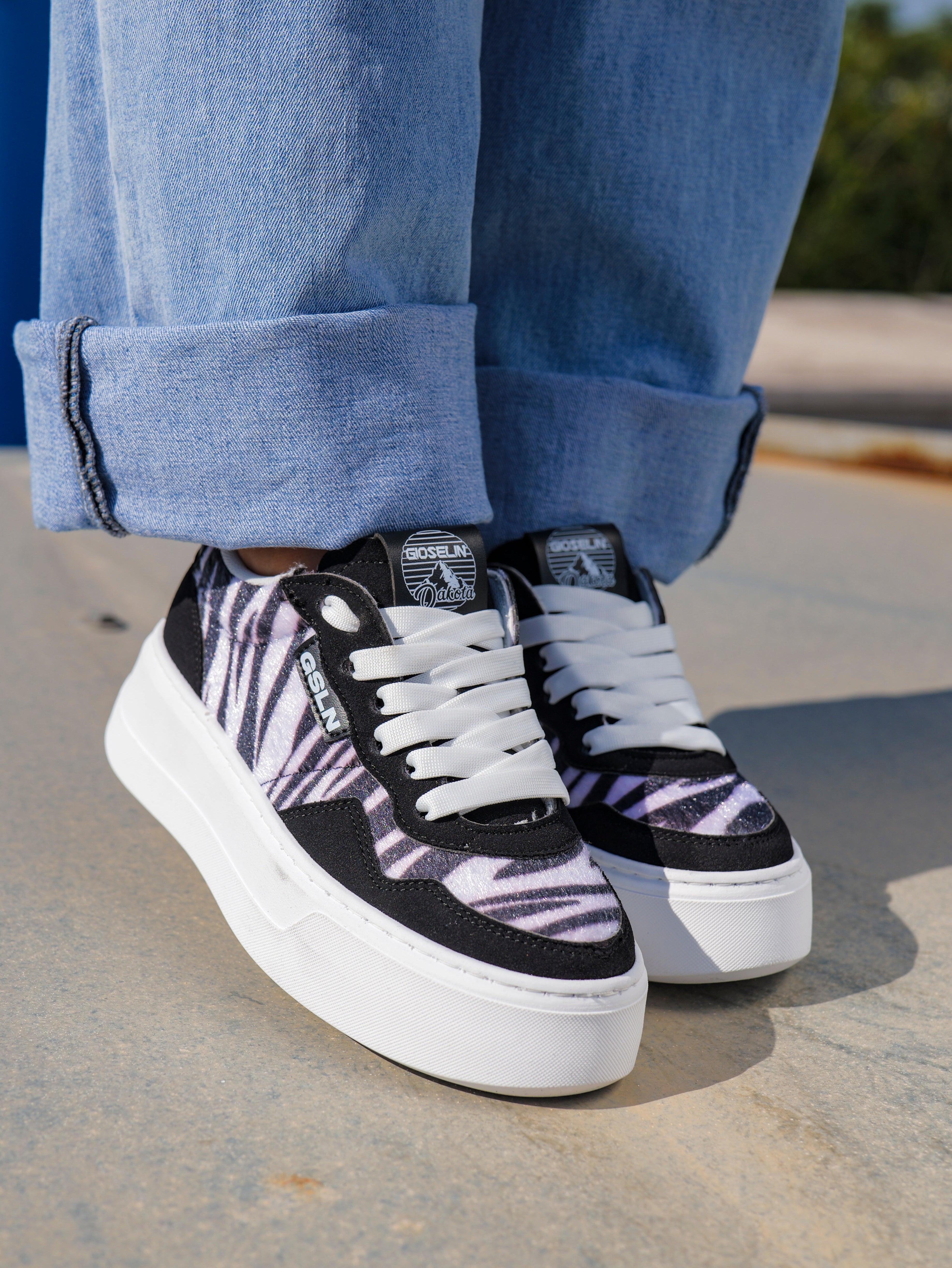 Un’anima selvaggia con un tocco sofisticato: Dakota Wild Zebra è la sneaker pensata per chi ama rompere gli schemi con stile. Il pattern zebrato vibrante e magnetico, rende ogni passo un’esplosione di carattere e originalità. Il mix di tonalità intense e delicate crea un effetto visivo audace ma armonioso, perfetto per chi non vuole passare inosservata.