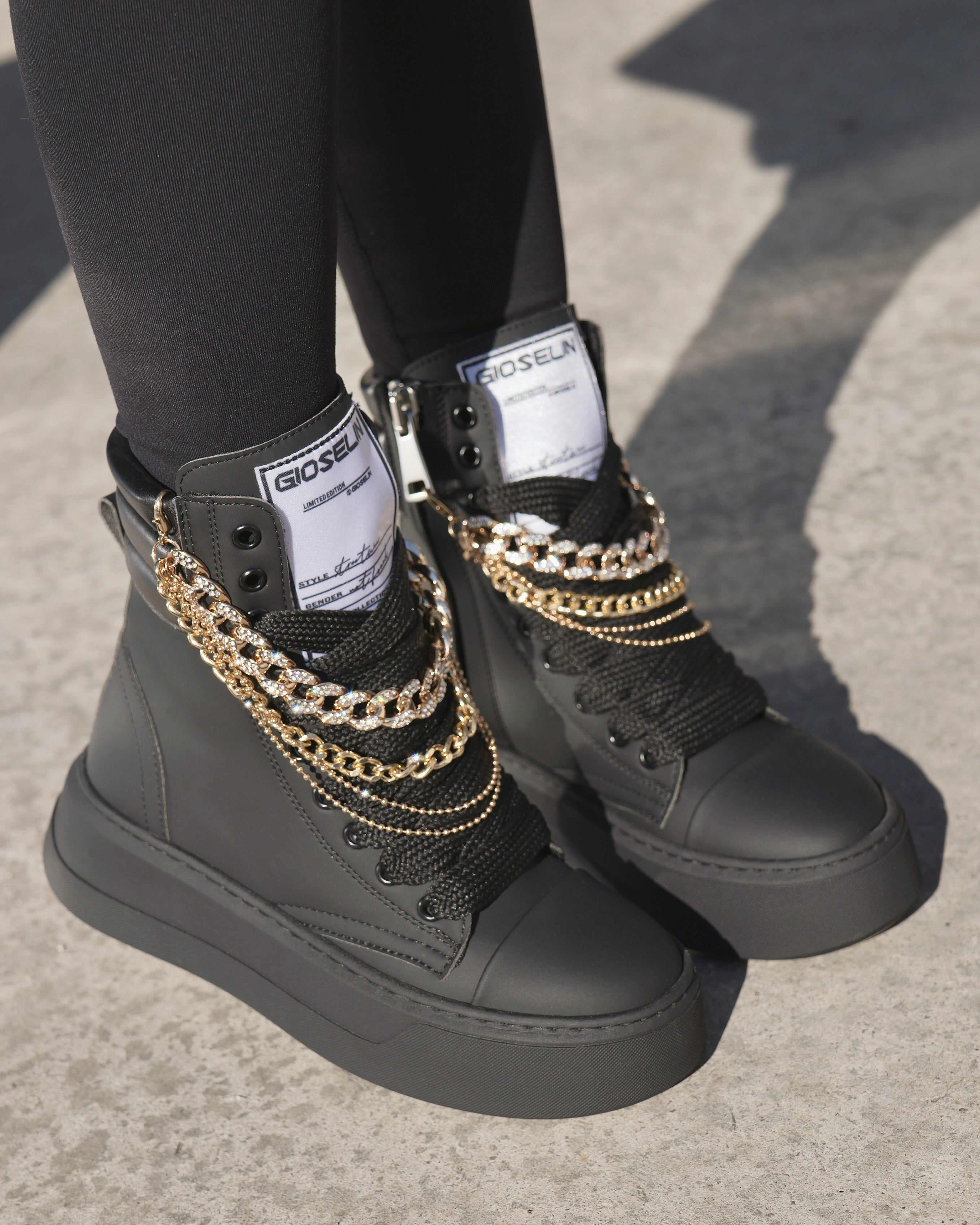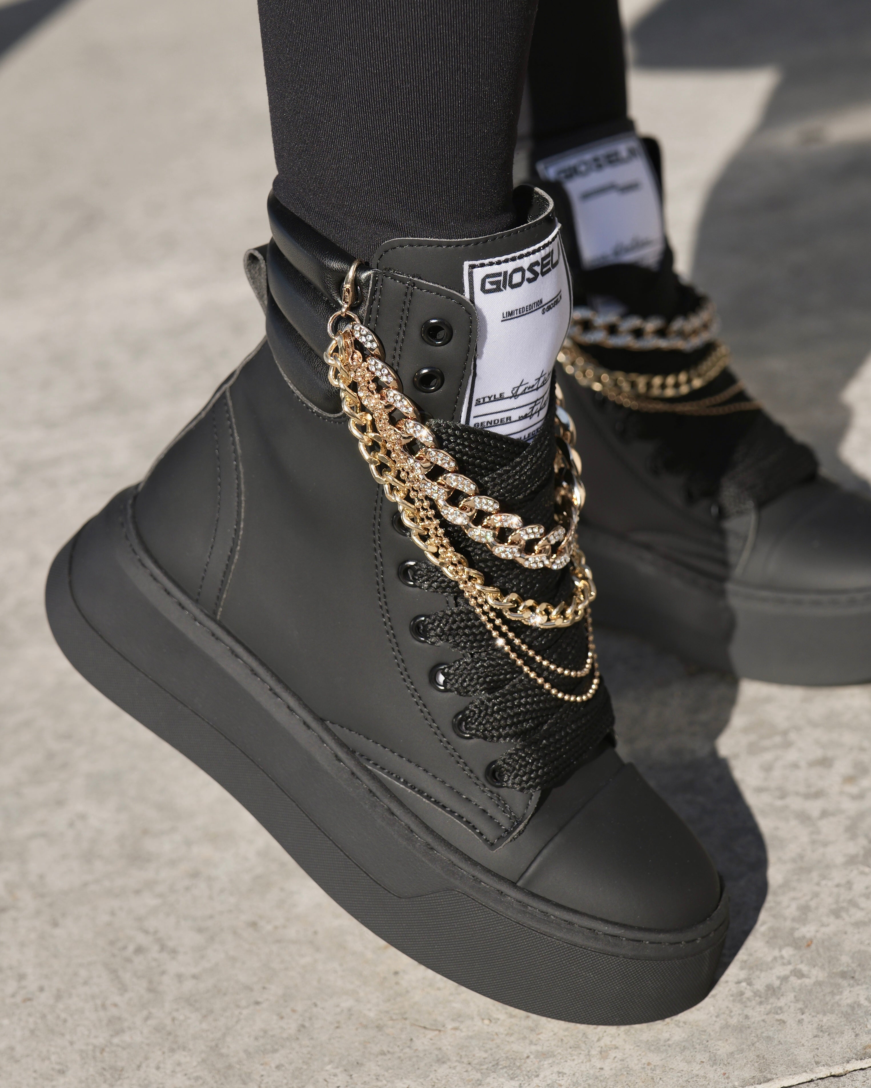Wer Nit-Up Collier trägt, verwandelt jeden Schritt in ein persönliches, unverwechselbares Stil-Statement. Dieser Stiefel ist die Wahl für alle, die keine Kompromisse zwischen Komfort und Luxus, Funktionalität und Opulenz eingehen wollen. Mit Nit-Up Collier hebt Gioselin urbane Eleganz auf ein neues Level – ein ikonisches Accessoire, das Streetwear mit Glamour verbindet und garantiert für Aufsehen sorgt.