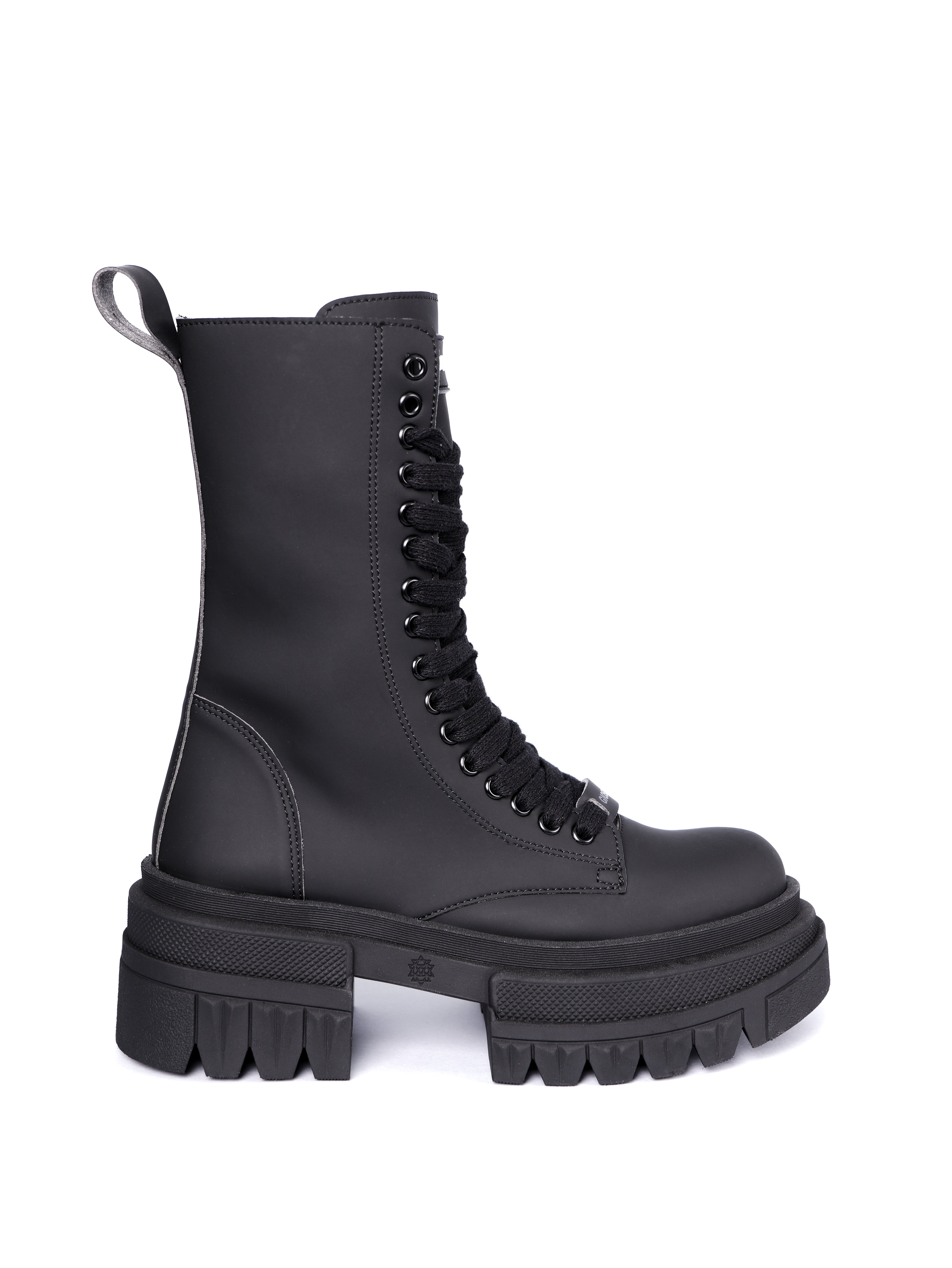 Das Schnürmodell dieses Kampfstiefels bietet vielfältige Passformmöglichkeiten, während die Zungen ein einfaches Anziehen des Schuhs bei maximalem Komfort ermöglichen. Die runde Spitze sorgt für einen Hauch von Eleganz, während die klobige Sohle außergewöhnlichen Halt bietet.