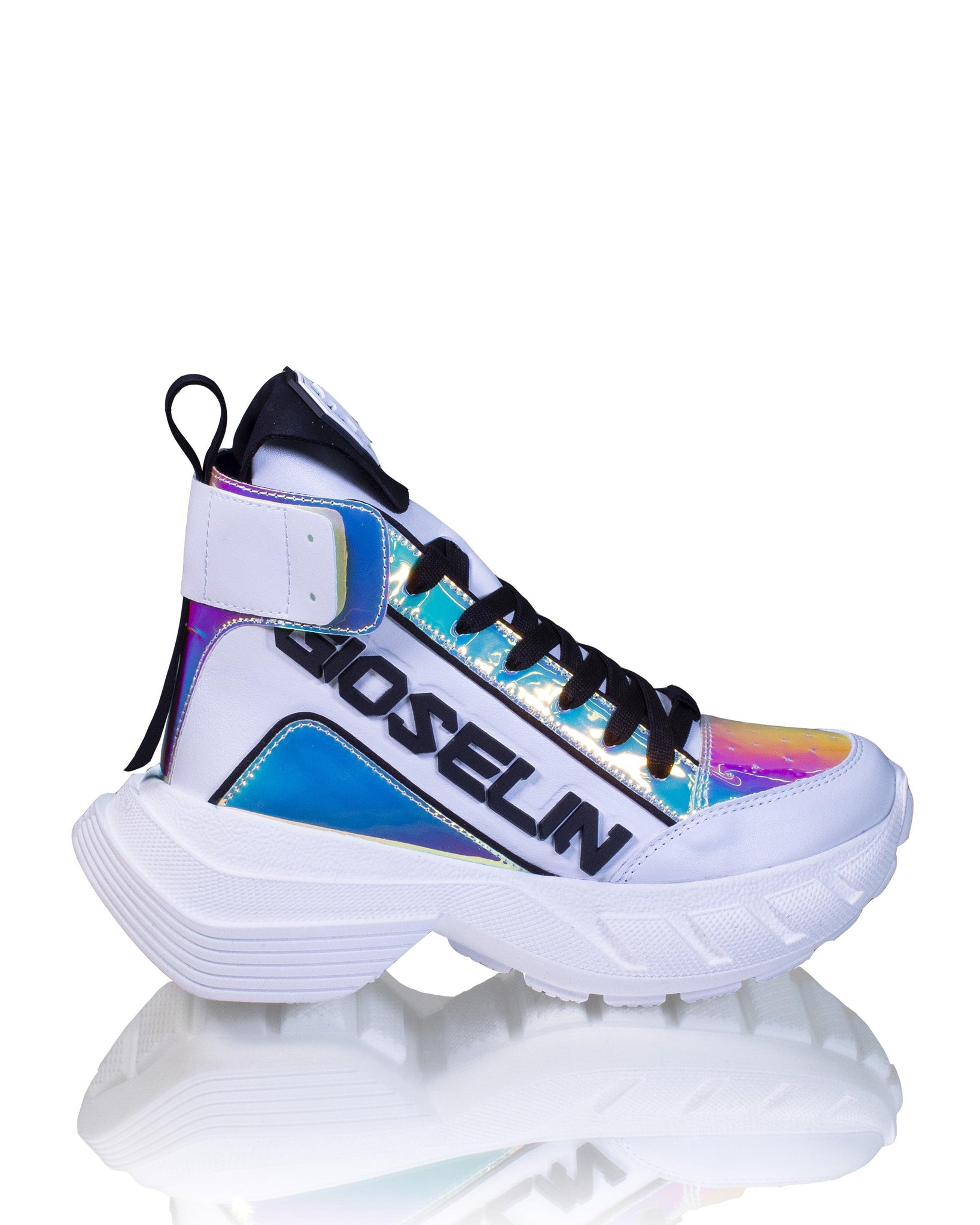 Sneakers mit schillernden Details sind die ideale Wahl für alle, die einen Hauch von Helligkeit in ihrem Stil suchen. Diese Sneaker zeichnen sich durch ein hohes Profil aus, das Ihrem Look einen Hauch von Eleganz verleiht. Das Modell ist geschnürt und sorgt den ganzen Tag über für einen sicheren und bequemen Sitz. Die schillernden Kontrastpaneele verleihen dem Design einen Hauch von Originalität und fangen das Licht auf faszinierende Weise ein.