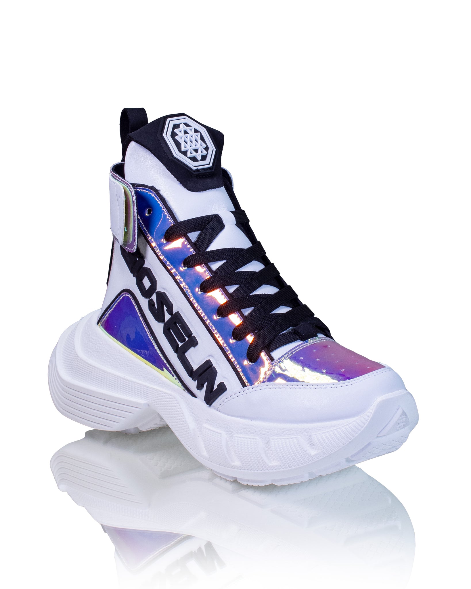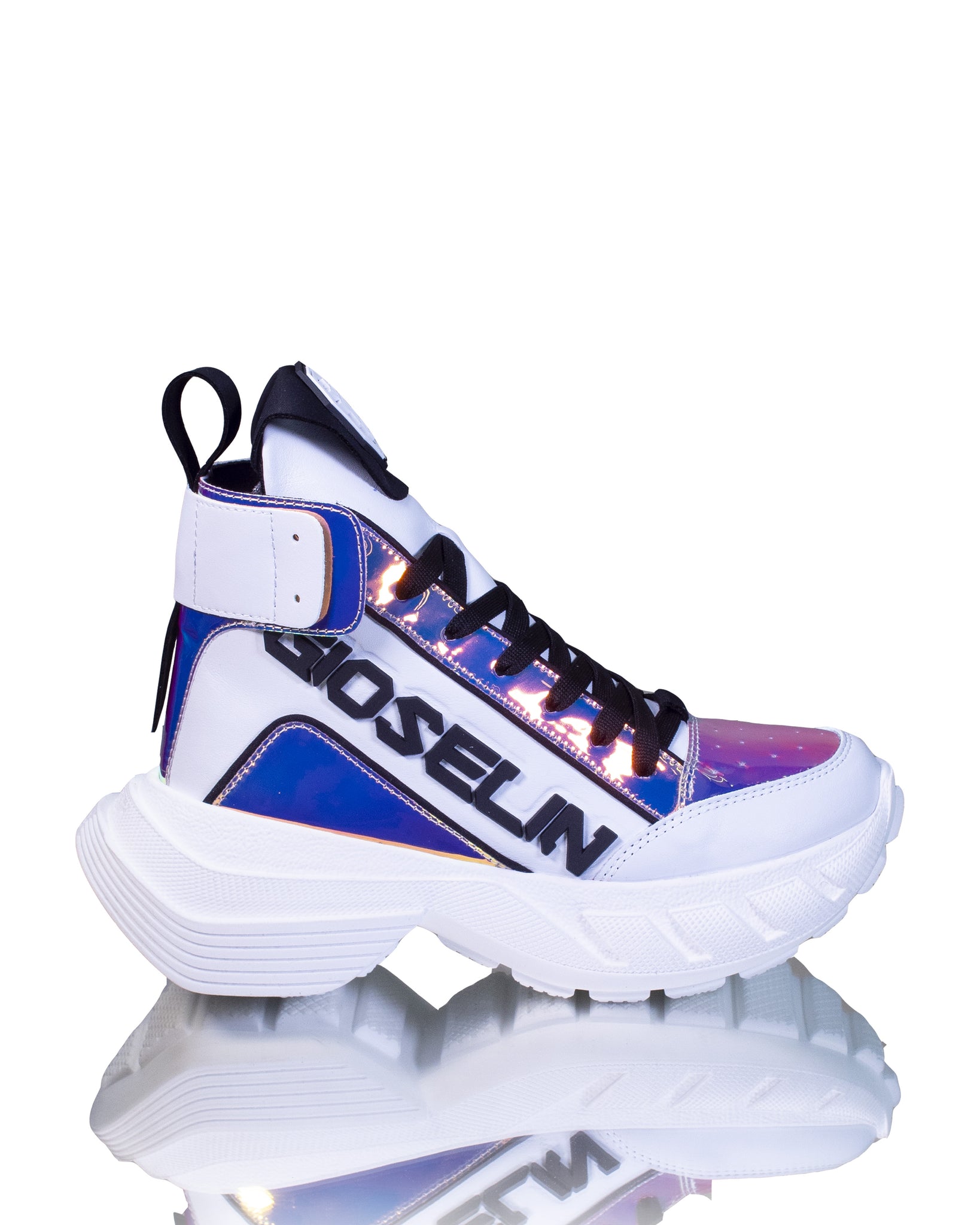 Die schillernden Kontrasteinsätze verleihen diesen Sneakern eine futuristische und trendige Ausstrahlung und machen sie zur idealen Wahl für alle, die gerne auffallen. Das markante Gioselin-Logo, das auffällig auf die Seite gedruckt ist, unterstreicht die Originalität des Designs.
