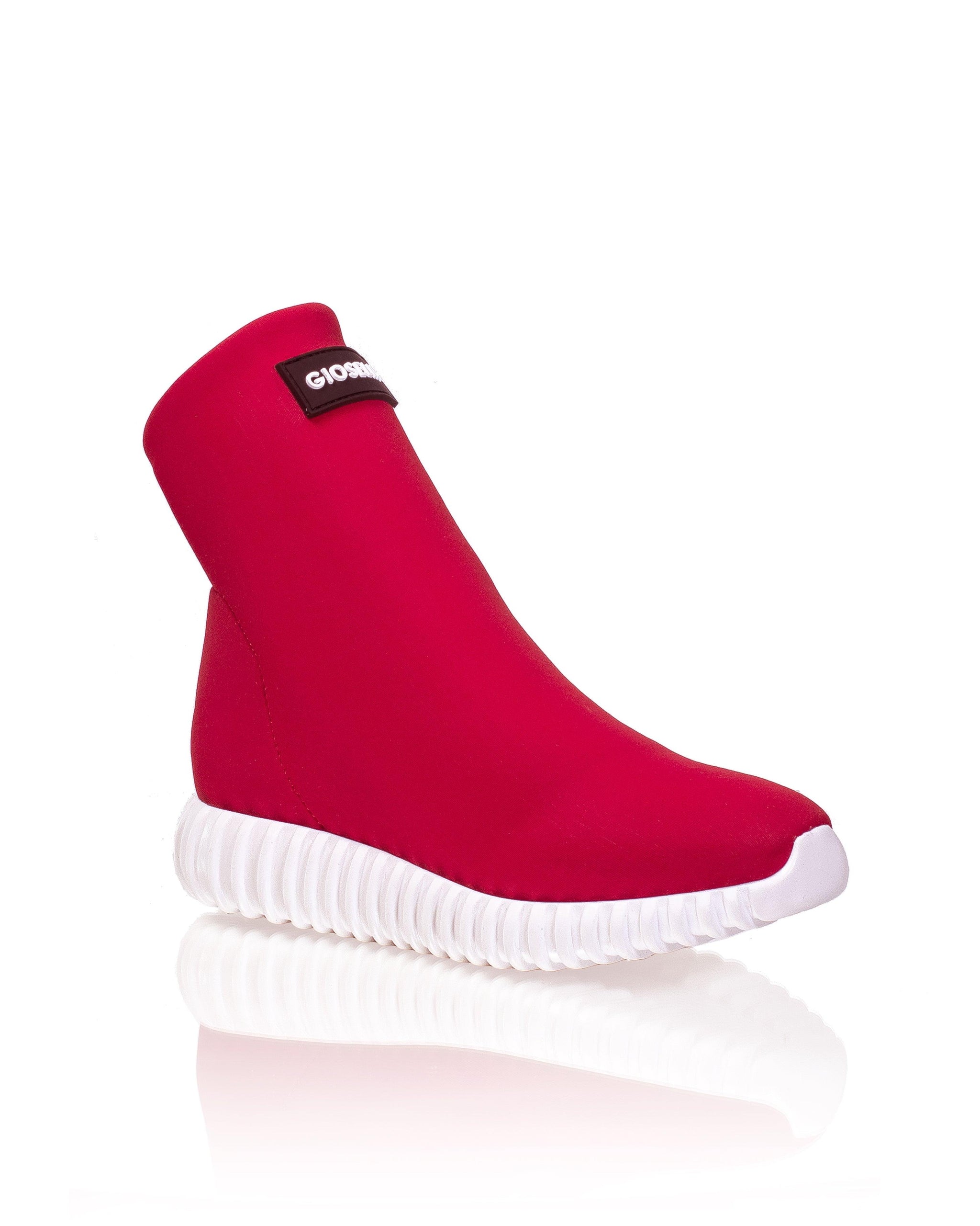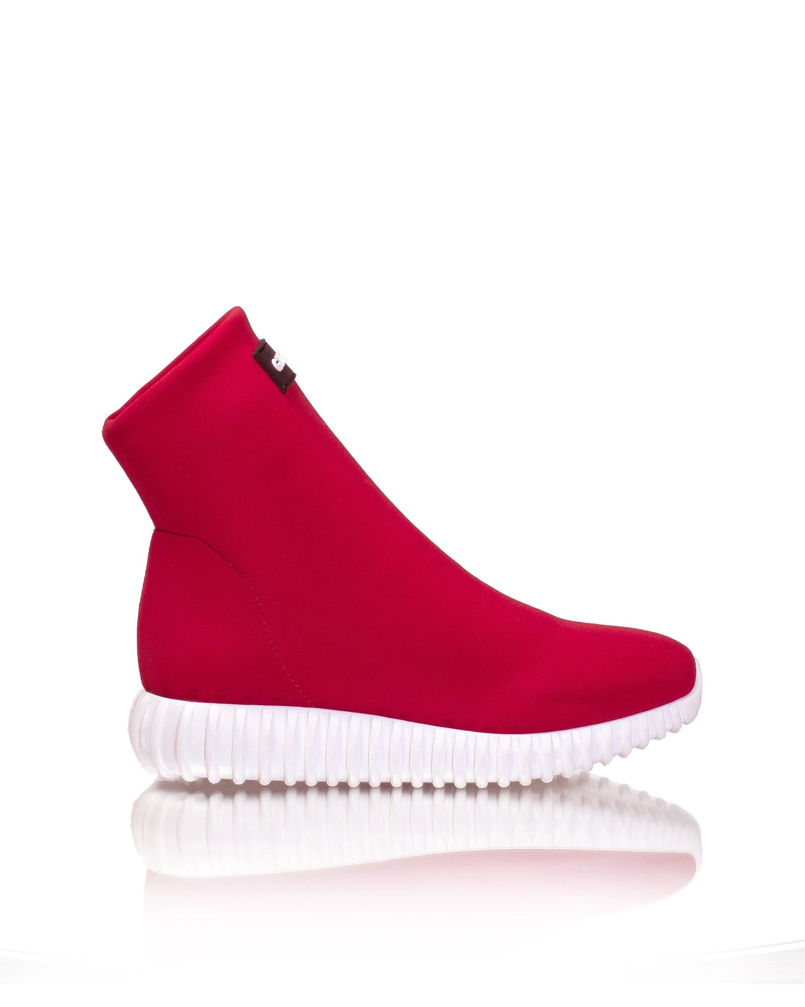 Das flammende Rot dieser Sneaker wird überall Aufmerksamkeit erregen. Es ist eine kräftige und auffällige Farbe, die Leidenschaft und Vitalität vermittelt. Der Knöchel mit Sockeneffekt bietet einen bequemen und sicheren Sitz, während die geformte Sohle einen stabilen Halt in jedem Gelände garantiert.