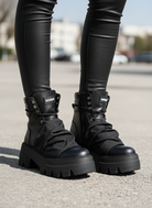 L’anfibio è dotato sia di allacciatura frontale regolabile, sia di una cerniera laterale che permette di indossarlo rapidamente mantenendo l’assetto dei lacci. Una soluzione pratica pensata per chi è sempre in movimento.