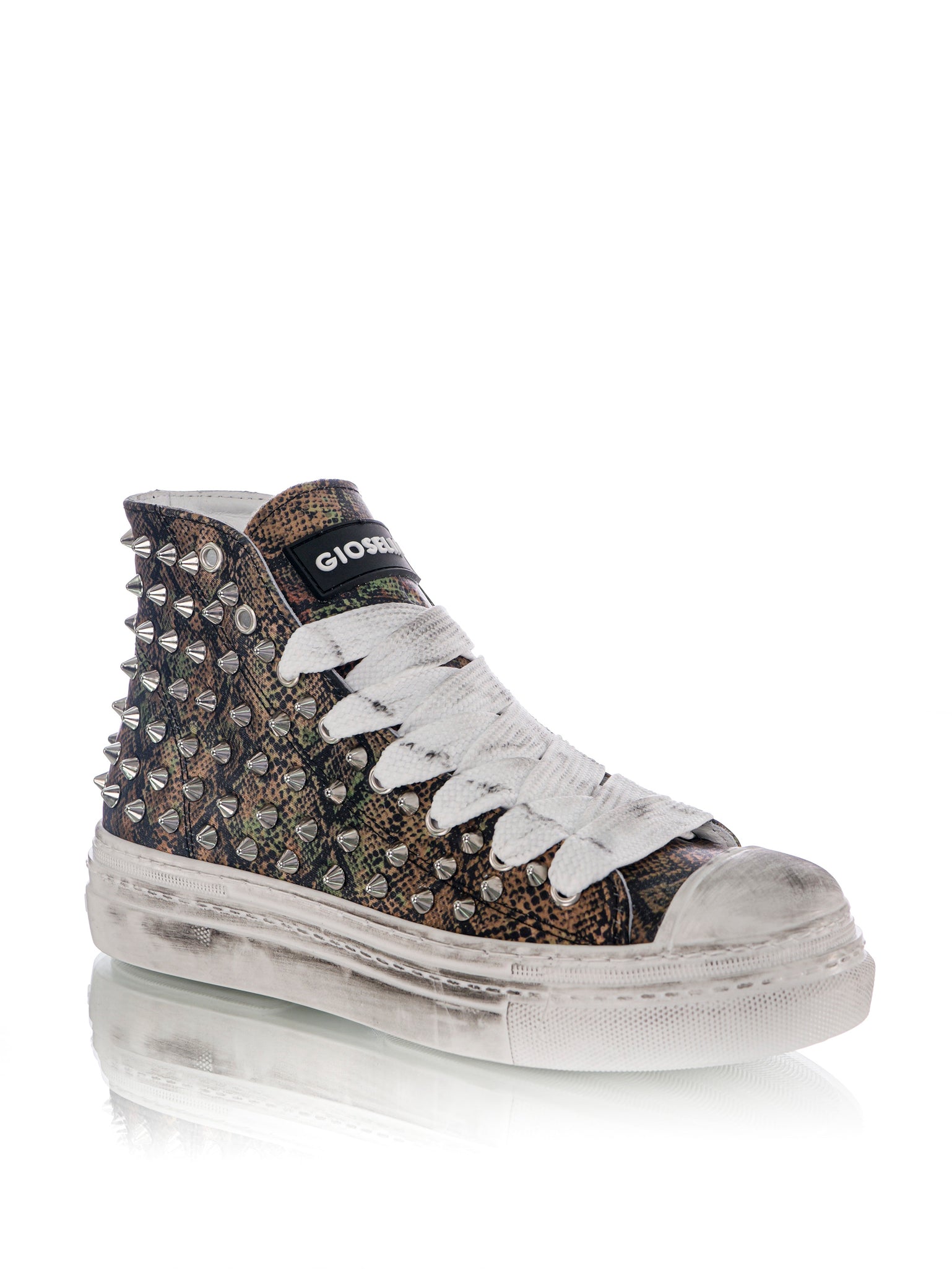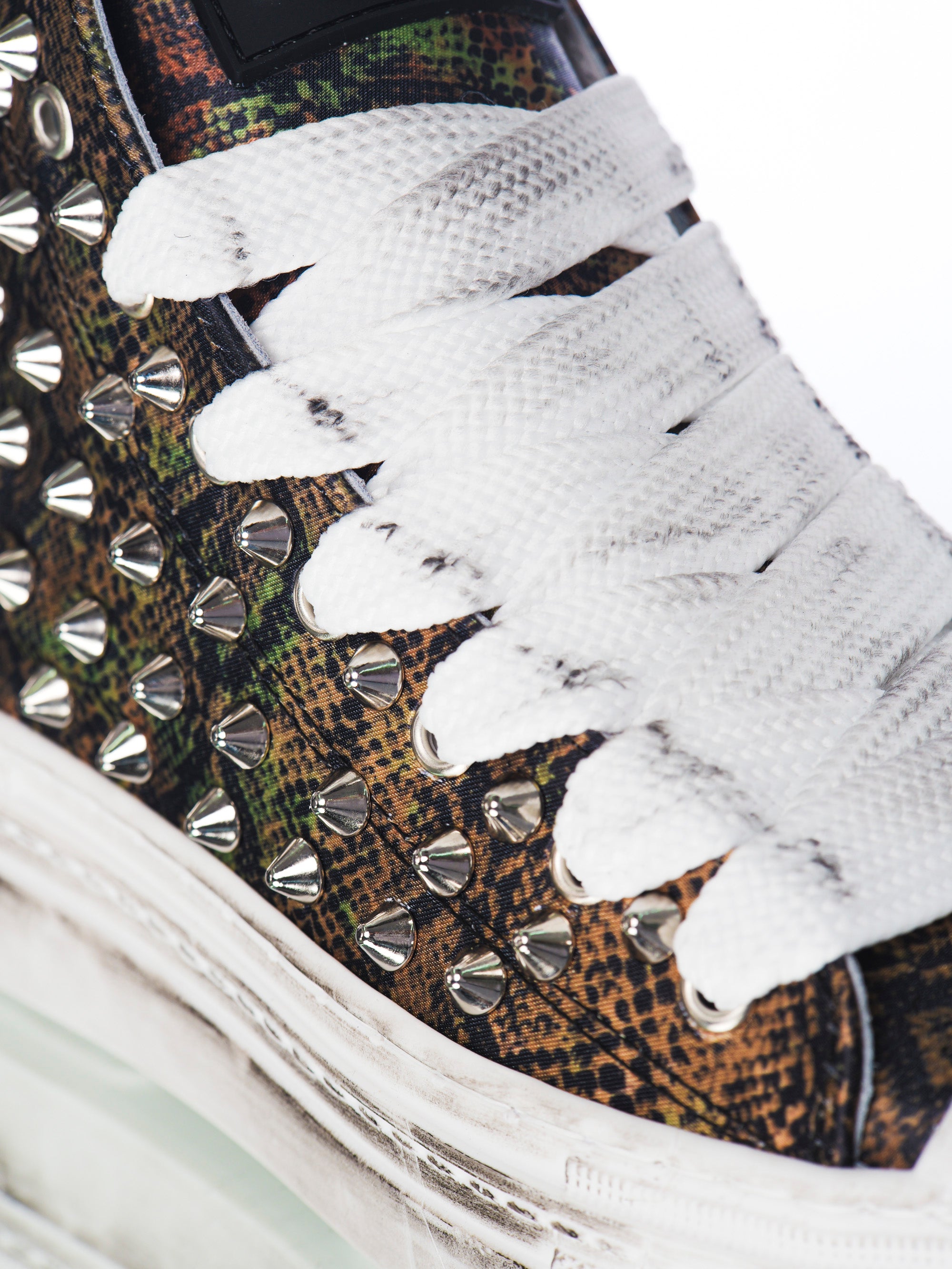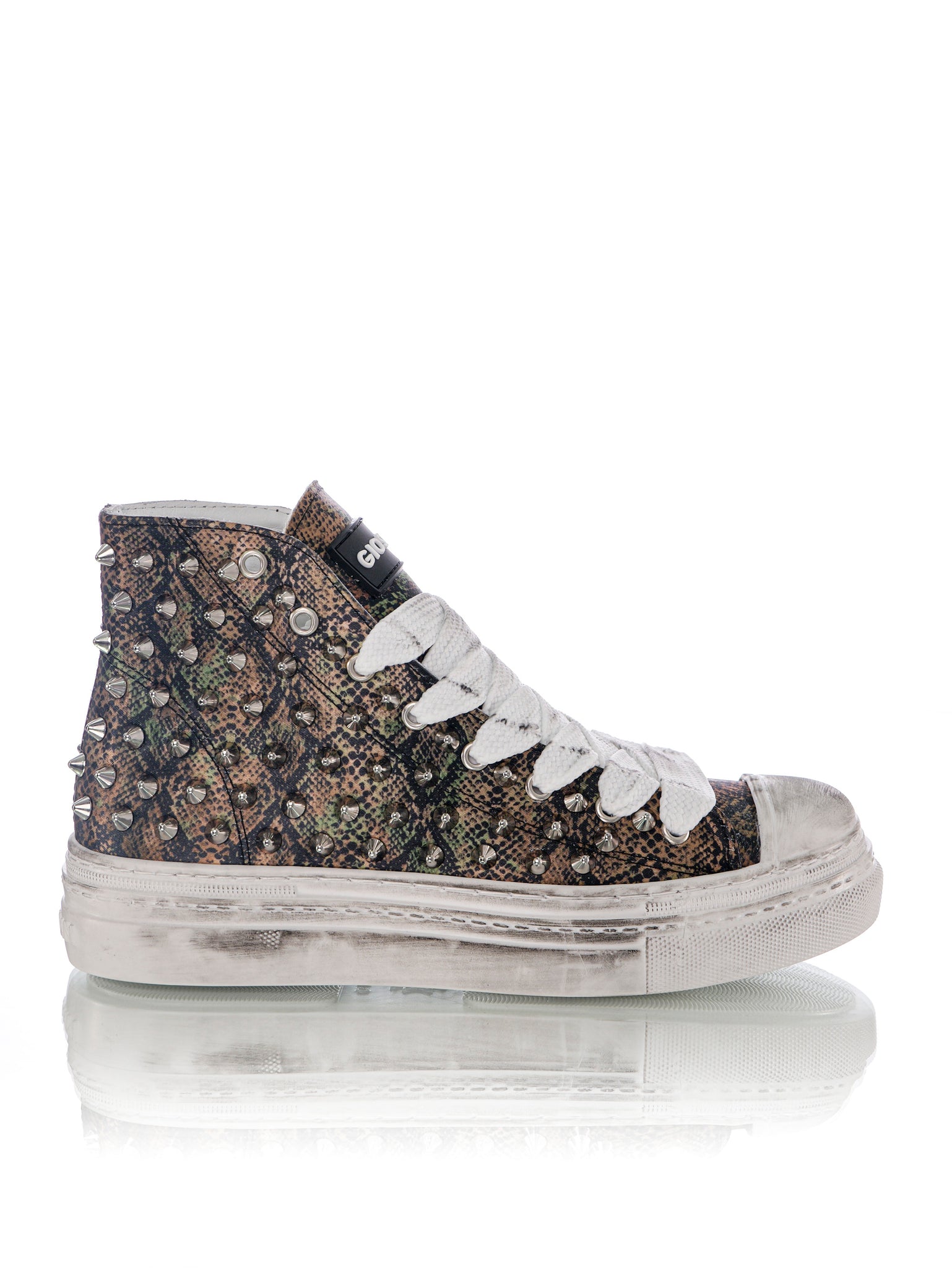 Die „Play Pitonato“ bewahrt den rebellischen Geist der Originalversion, mit ihren charakteristischen Nieten, die jedem Schritt eine kraftvolle und einzigartige Note verleihen. In dieser neuen Ausgabe wurde das Design jedoch um eine edle Schlangenleder-Textur ergänzt, die wilde Eleganz mit moderner Raffinesse vereint.