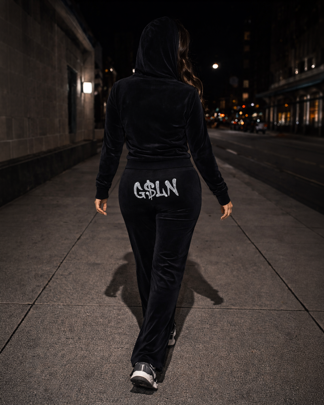 La Tuta BADDIE NERA rappresenta l’essenza dello street luxury più audace firmato Gioselin.